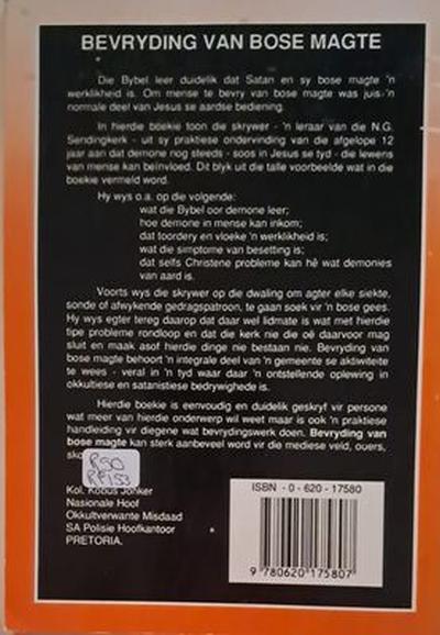 Tuis.Home » Karin se Boekwinkel / Bookshop » BOEKE / BOOKS » Christelik / Christian » Christelik - Afrikaans » Bevryding van bose magte – Ds Piet du Toit