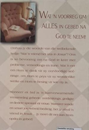 Toestand: Aanvaarbaar (Vlekkies) Formaat: Sagteband Bladsye: 211 Uitgegee: 2001 CUM Uitgewers ISBN: 9781868297467